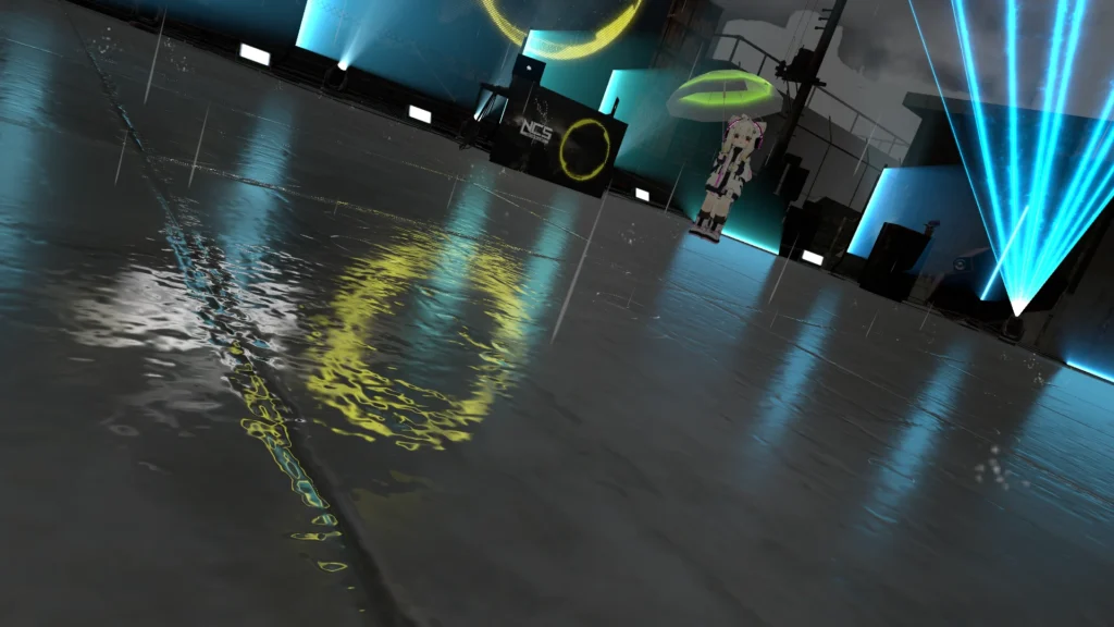 このワールドを構築する上で、私が最もこだわり、そして挑戦したのが「雨」の表現です。