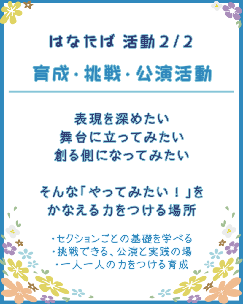 気軽に遊びにこれるイベントや、気軽に楽しめる公演を行います。
